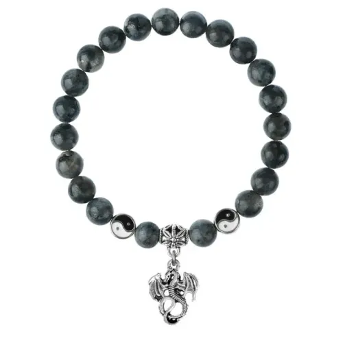 Браслет из натурального камня лабрадор с подвеской в виде дракона.