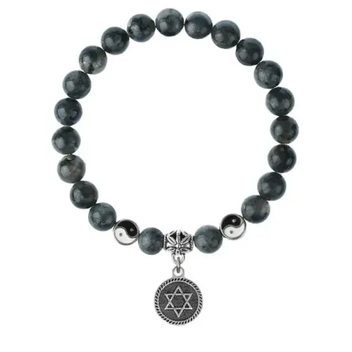 Браслет-амулет из натурального камня лабрадор с подвеской в виде Звезды Давида.