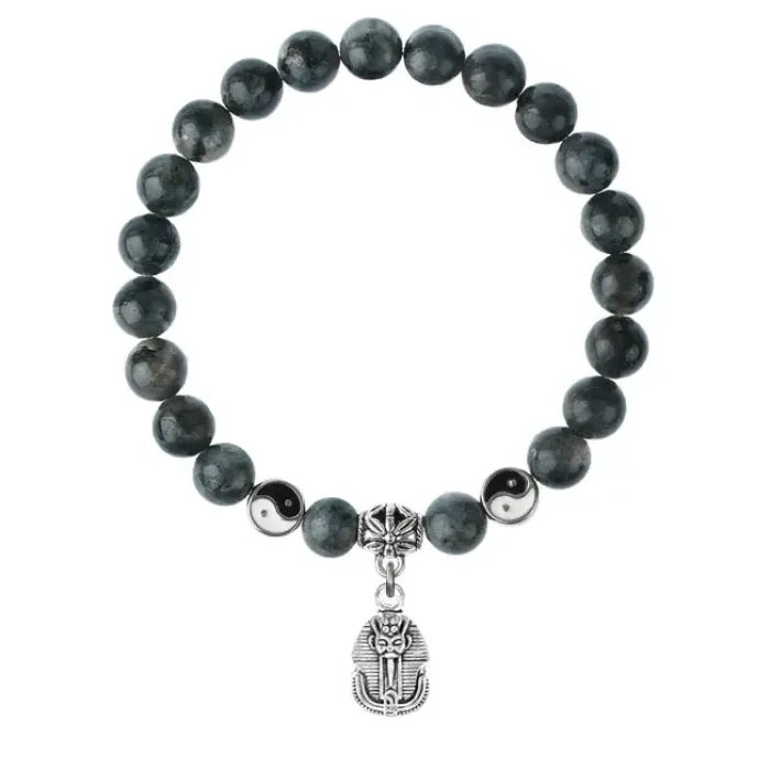 Браслет из натурального камня лабрадор с подвеской-талисманом в виде фараона.