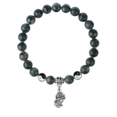 Браслет-амулет из натурального камня лабрадор с подвеской в виде фигурки Пи Яо.