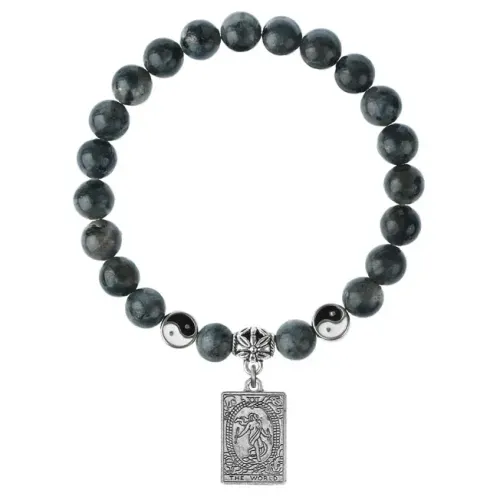 Браслет из натурального камня лабрадор с подвеской в виде карты Таро.