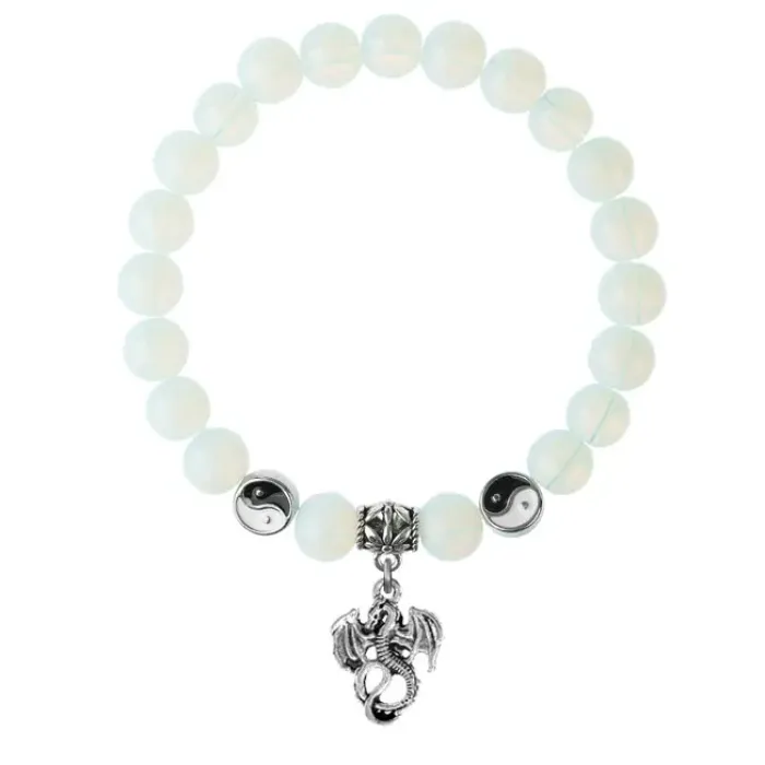 Браслет из синтетического камня опалит с подвеской-талисманом в виде дракона.