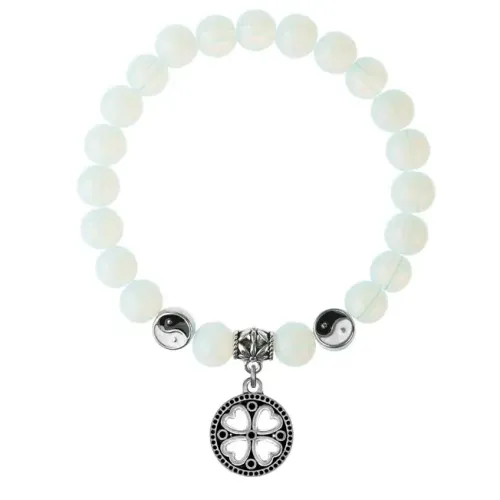 Браслет-амулет из синтетического камня опалит с подвеской в виде клевера.