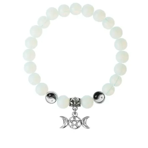 Браслет-амулет из синтетического лунного камня (опалит) с подвеской из бижутерного сплава.
