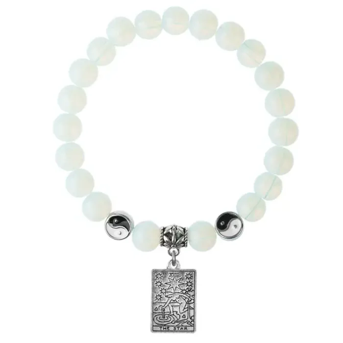 Браслет-амулет с подвеской в виде карты Таро «Звезда». Изготовлен из синтетического лунного камня (опалита) и бижутерного сплава.