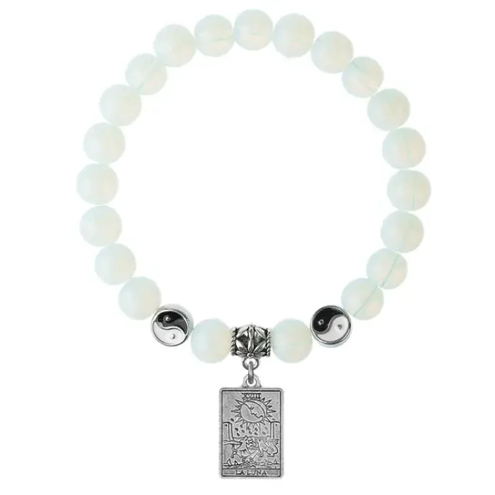 Браслет с подвеской в виде карты Таро «Луна». Изготовлен из синтетического опалита (лунный камень) и бижутерного сплава.