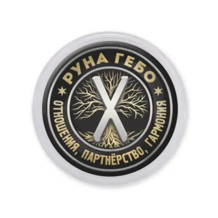 Акриловый магнит с изображением руны Гебо. Изготовлен из прозрачного акрила, изображение защищено акриловой крышкой.