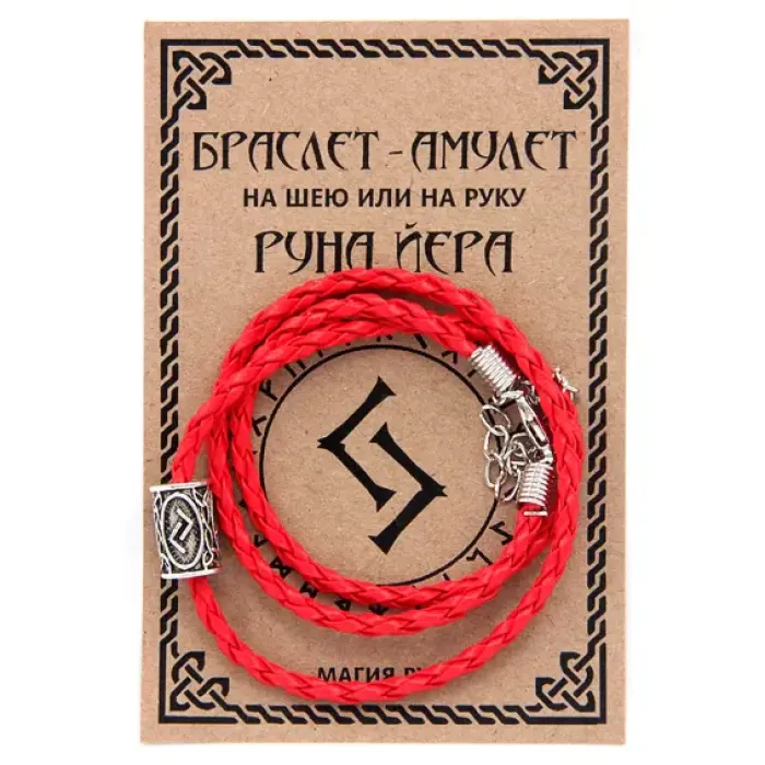Браслет-амулет с рунической бусиной Йера — это стильное и символичное украшение, которое можно носить как на запястье, так и на шее. Рунические бусины стали настоящим трендом, добавляя индивидуальность любому образу. Красный кожаный шнурок в комплекте позволяет легко адаптировать браслет под любые размеры, а специальная резинка надежно фиксирует бусину на месте. Также возможно использовать амулет для украшения косичек или бород. Упакован в качественный пакет с европодвесом и инструкцией по применению. В народной традиции руна Йера считается символом удачи в долгосрочных начинаниях и помогает строить крепкие отношения, а также способствует накоплению благосостояния.