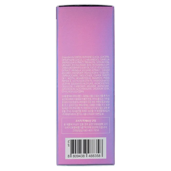 Состав: Camellia Sinensis Leaf Extract, Sodium Hyaluronate, Fucus Vesiculosus Extract, Copper Tripeptide-1, Acetyl Hexapeptide-8, Palmitoyl Pentapeptide-4.