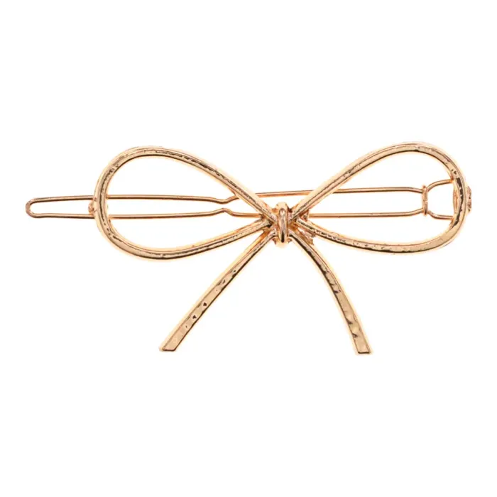 Заколка для волос в форме банта из бижутерного сплава с покрытием под золото.