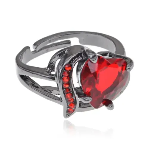 Безразмерное кольцо в форме сердца с инкрустацией.