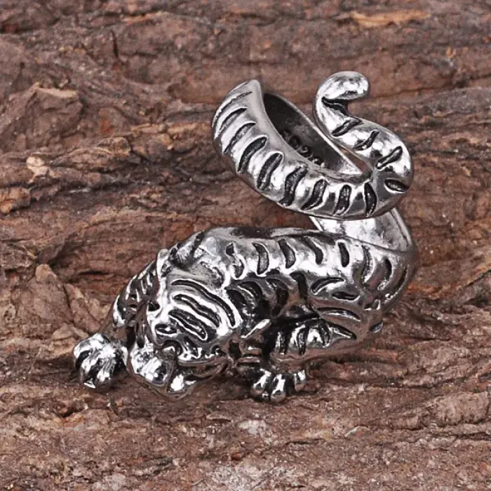 Безразмерное кольцо Тигр — это стильный аксессуар, который добавит изюминку в любой образ. Изготовленное из качественного металла и покрытое под серебро, оно обладает не только привлекательным внешним видом, но и прочностью. Ширина кольца составляет 35 мм, что делает его универсальным для различных размеров пальцев.