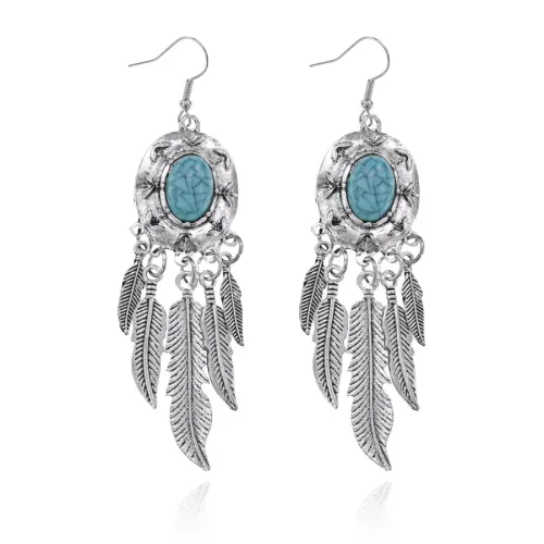 Серьги из металла с вставками синтетической бирюзы и замком типа петля.