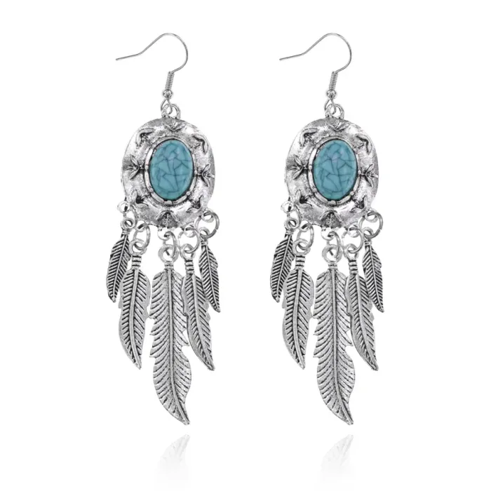 Материал и изготовление: Металл с покрытием под серебро, вставки из синтетической бирюзы.
