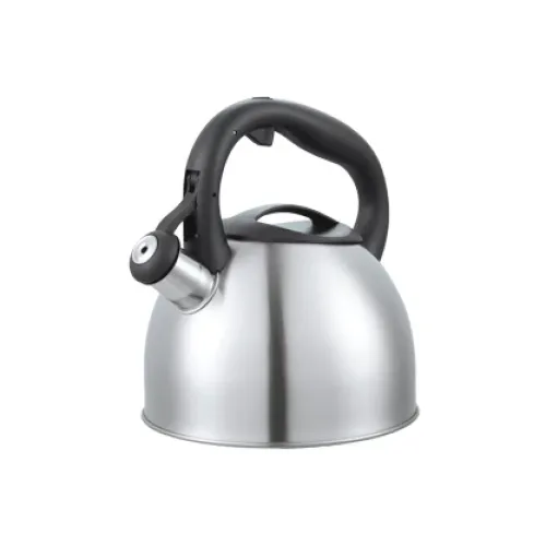 Корпус чайника выполнен из нержавеющей стали, устойчивой к высоким температурам и механическим воздействиям. Капсульное дно обеспечивает равномерный нагрев и совместимость с индукционными варочными панелями. Ручка из бакелита обладает низкой теплопроводностью, что предотвращает нагрев при использовании. Металлическая крышка плотно прилегает к корпусу, а встроенный свисток подаёт акустический сигнал при закипании воды.