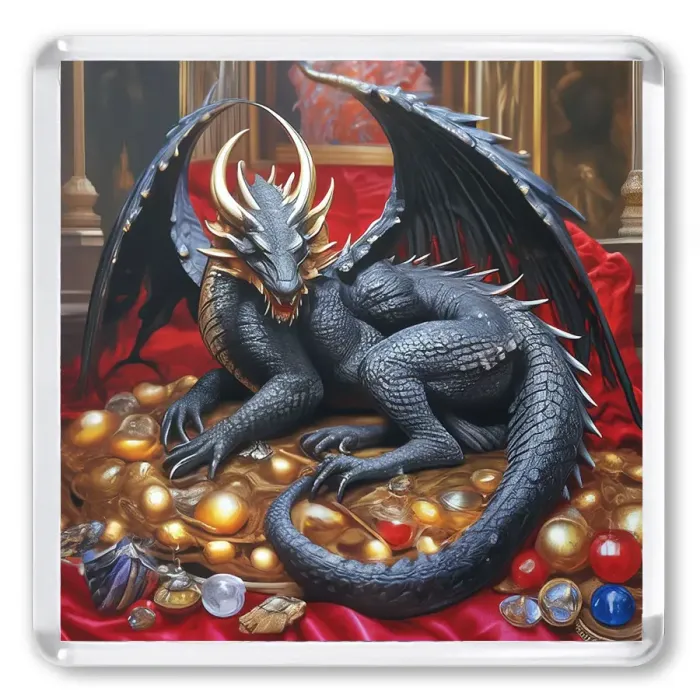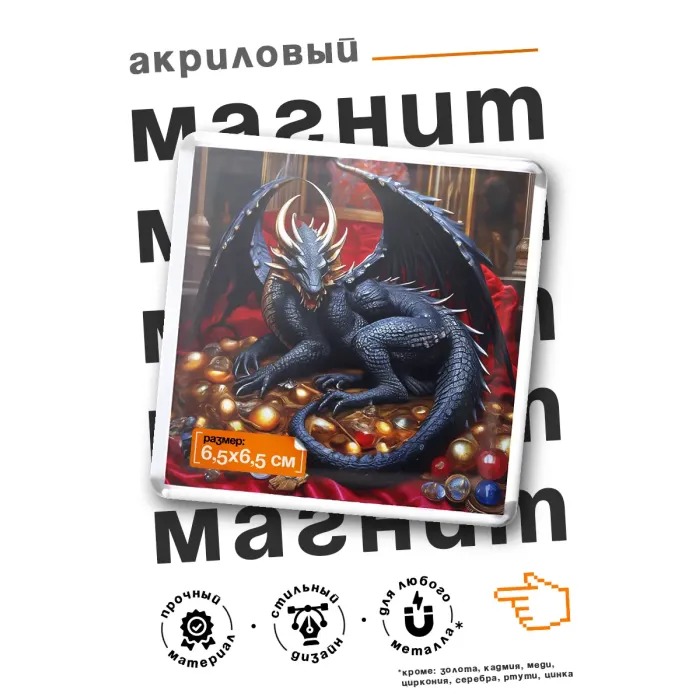 Квадратный магнит из акрила с тематическим изображением драконов.