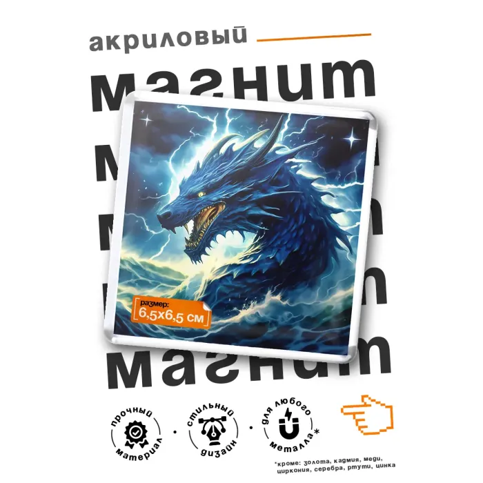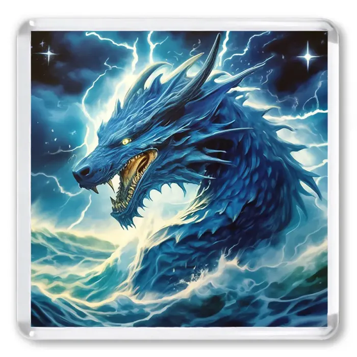 Квадратный магнит для сувенирного использования, изготовленный из акрила, с изображением водного дракона.