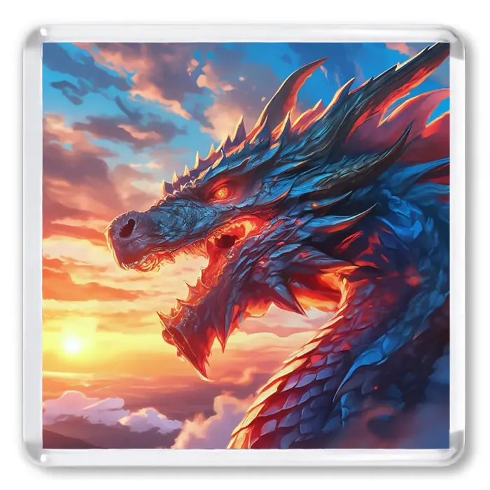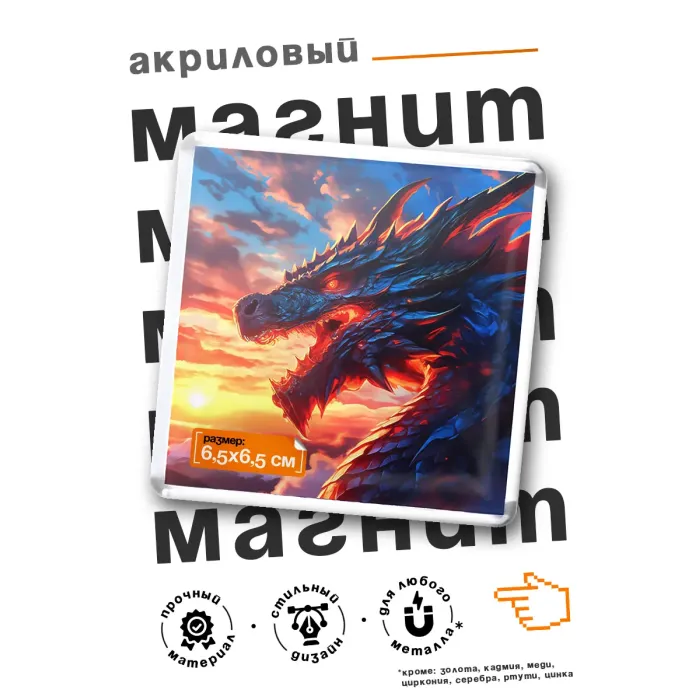 Магнит для интерьера из акрила квадратной формы с изображением дракона.