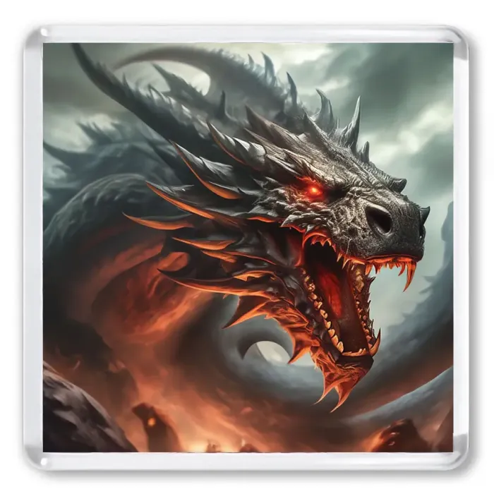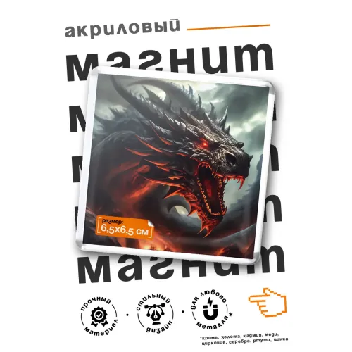 Квадратный магнит из акрила с изображением дракона для крепления на металлические поверхности.