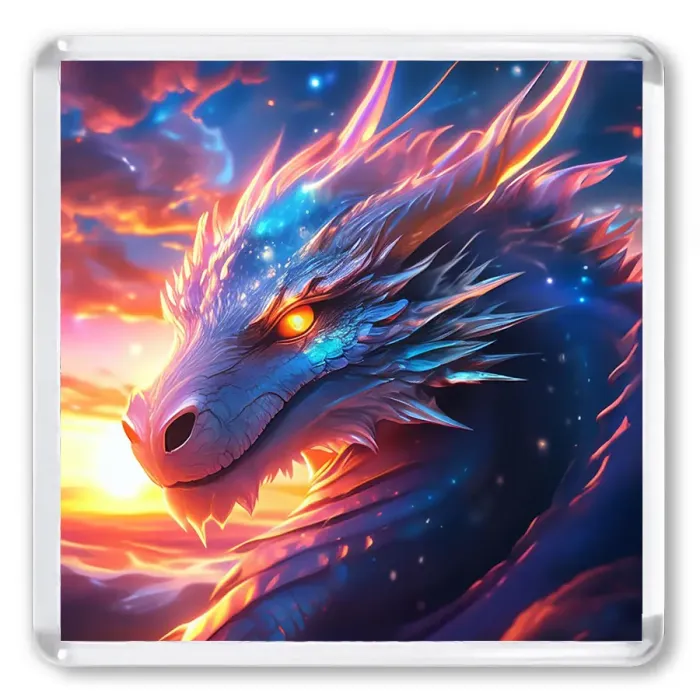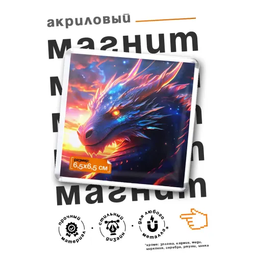 Квадратный акриловый магнит с изображением китайского дракона.