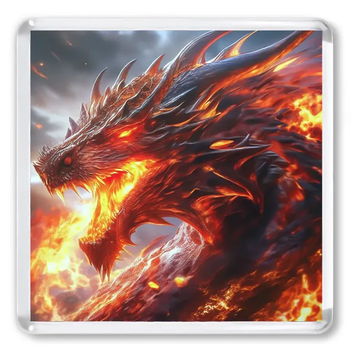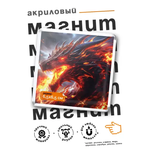 Квадратный магнит для декора из акрила с изображением Огненного дракона.