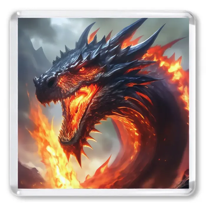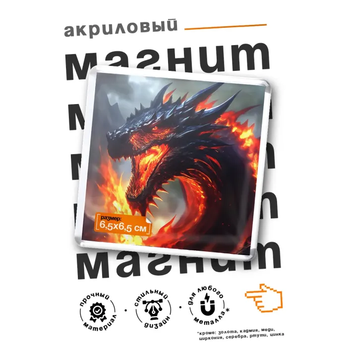 Квадратный магнит для холодильника из акрила с изображением дракона.