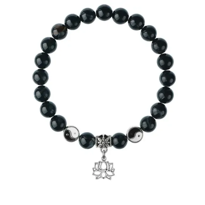 Браслет Лотос (гармония и развитие), Черный агат 8мм BSPE1-22-3005