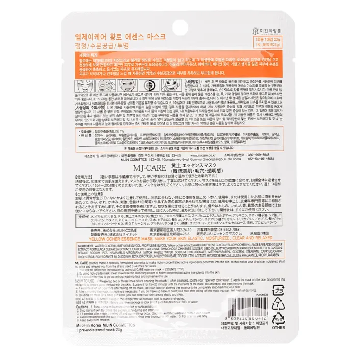 Тканевая маска для лица Yellow Ocher Essence Mask от Mijin — это эффективное средство для глубокого очищения и улучшения состояния кожи. Маска с экстрактом жёлтой охры подходит для всех типов кожи, особенно рекомендуется для тусклой и уставшей. Жёлтая охра известна своей способностью глубоко очищать кожу благодаря отрицательным ионам, что в сочетании с другими активными компонентами способствует улучшению состояния кожи, делая её более здоровой и сияющей.