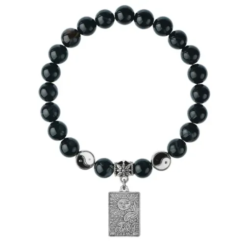 Браслет Таро - Солнце, Черный агат 8мм BSPE1-22-3022