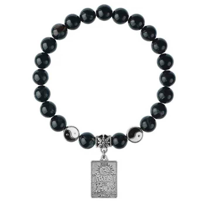 Браслет из натурального чёрного агата с подвеской-талисманом в виде символа Таро «Луна».