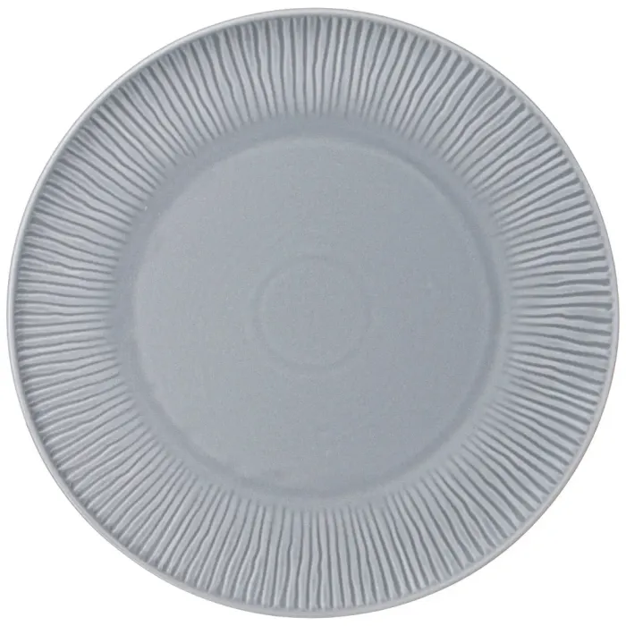 Тарелки выполнены из твёрдого фарфора, обожжённого при высокой температуре, что повышает их прочность и устойчивость к загрязнениям. Матовая серая глазурь с реактивным эффектом создаёт декоративную поверхность. Рельефный травяной узор и неправильная форма являются элементами дизайна коллекции.