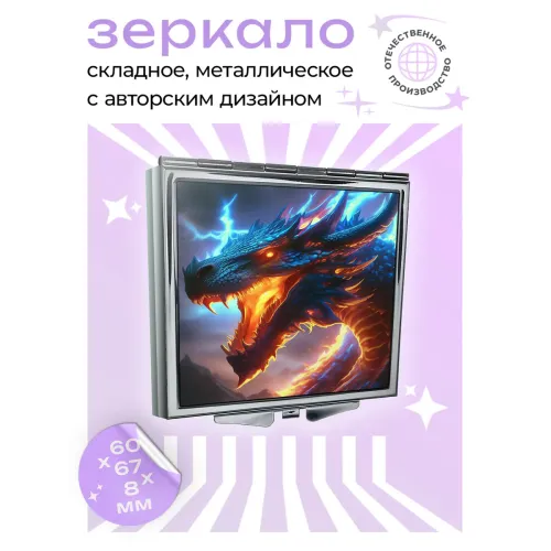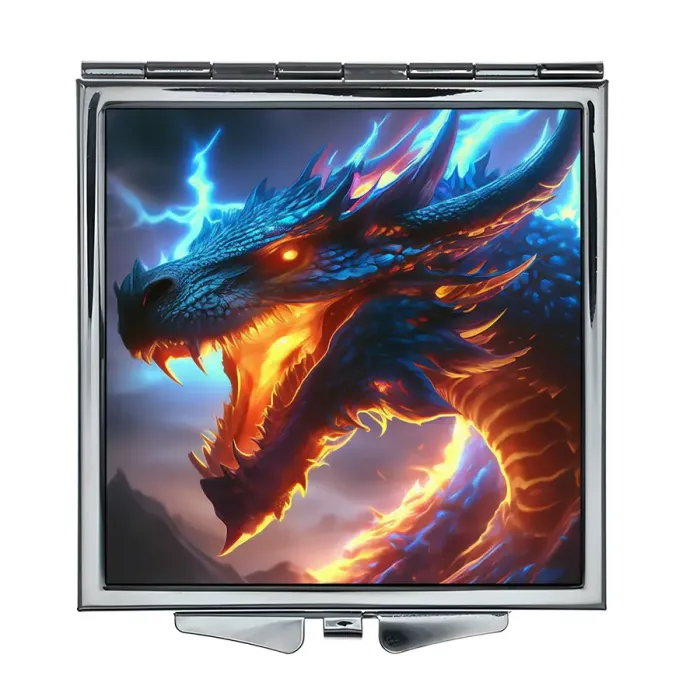 Складное квадратное зеркало с полноцветной печатью изображения «Гроза дракона» на металле.