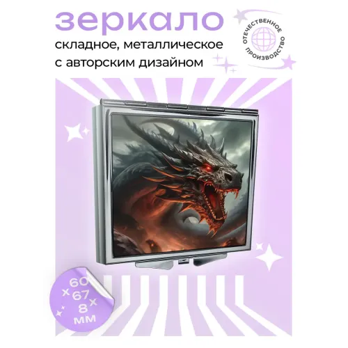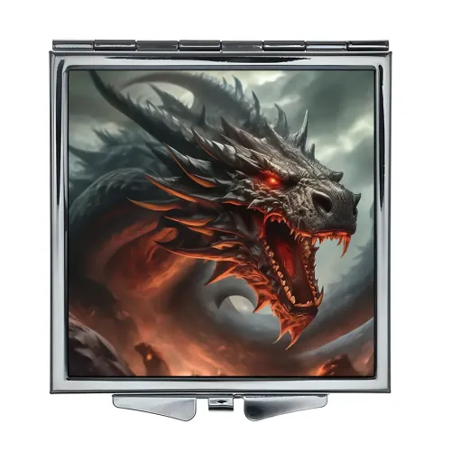 Складное квадратное зеркало с изображением дракона в стиле гримдарк.