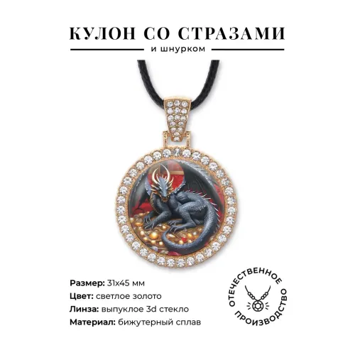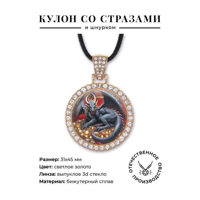 Кулон со стразами Сокровища драконов, цвет светлое золото ALKS0233