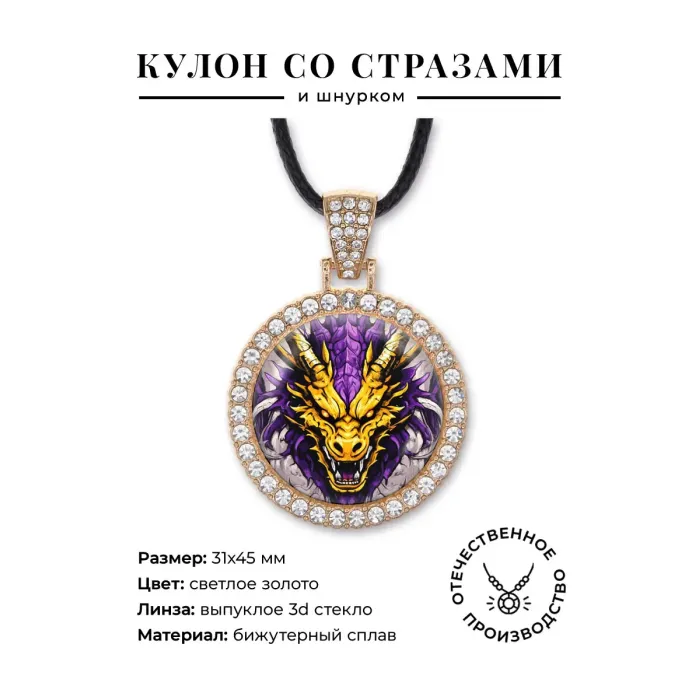 Кулон со стразами Двухцветный дракон, цвет светлое золото ALKS0242