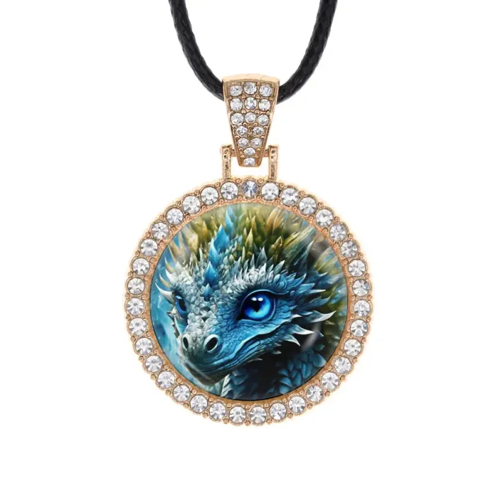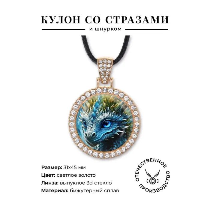 Кулон-амулет «Детёныш дракона» из бижутерного сплава со стразами и стеклянной линзой.
