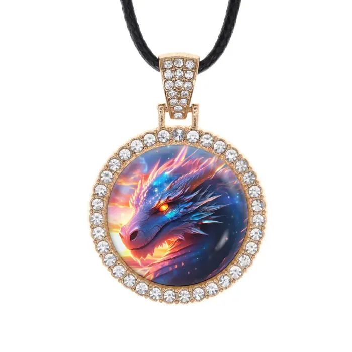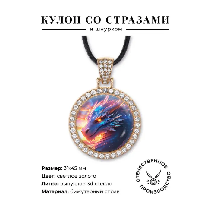 Кулон со стразами в виде китайского дракона из бижутерного сплава.