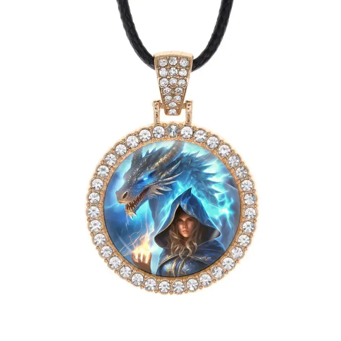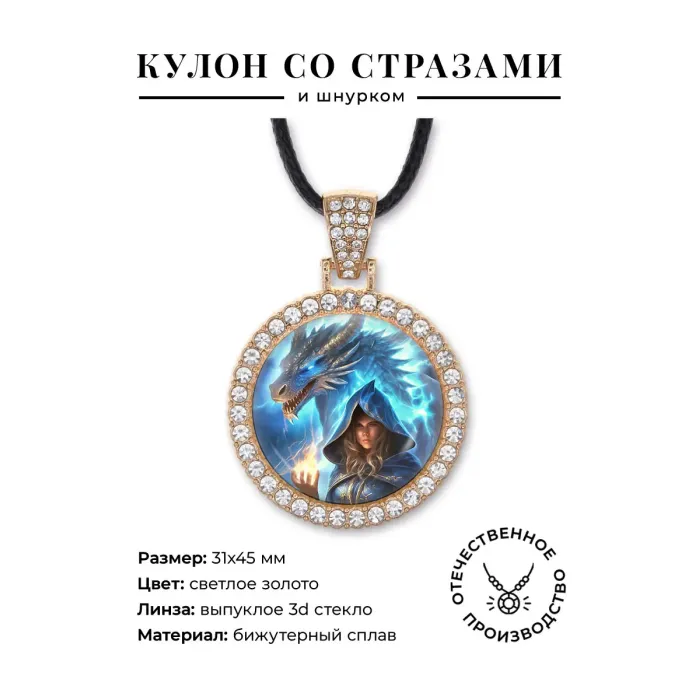 Кулон со стразами Дракон и маг, цвет светлое золото ALKS0268