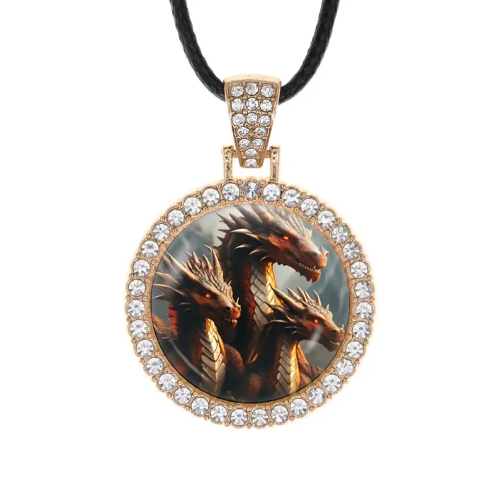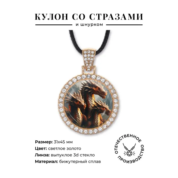 Кулон «Три дракона» — сувенирный амулет из бижутерного сплава с покрытием под светлое золото и инкрустацией стразами.