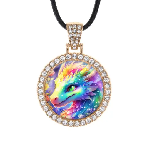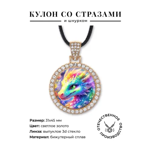 Кулон-амулет «Сказочный дракон» из бижутерного сплава с покрытием под светлое золото, инкрустированный стразами.