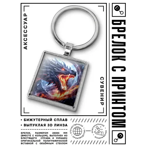 Брелок «Пламя дракона» — это стильный аксессуар, который станет отличным дополнением к ключам или сумке. Изготовленный из бижутерного сплава с покрытием под серебро, стали и стекла, он отличается прочностью и элегантным внешним видом. Размер брелка вместе с кольцом составляет 28х60 мм, что делает его компактным и удобным в использовании. Изображение защищено выпуклой стеклянной линзой, что придаёт изделию дополнительную защиту и блеск. Этот брелок может стать не только практичным предметом повседневного использования, но и символом силы и удачи в восточной культуре.