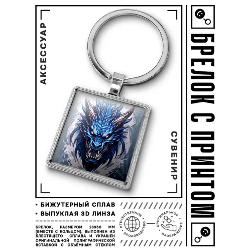 Брелок с изображением японского дракона. Изготовлен из бижутерного сплава, стали и стекла.