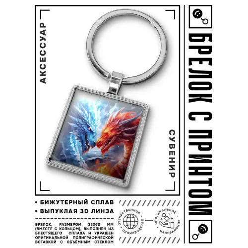 Брелок «Противостояние драконов» — сувенирный аксессуар из бижутерного сплава, стали и стекла с изображением драконов.