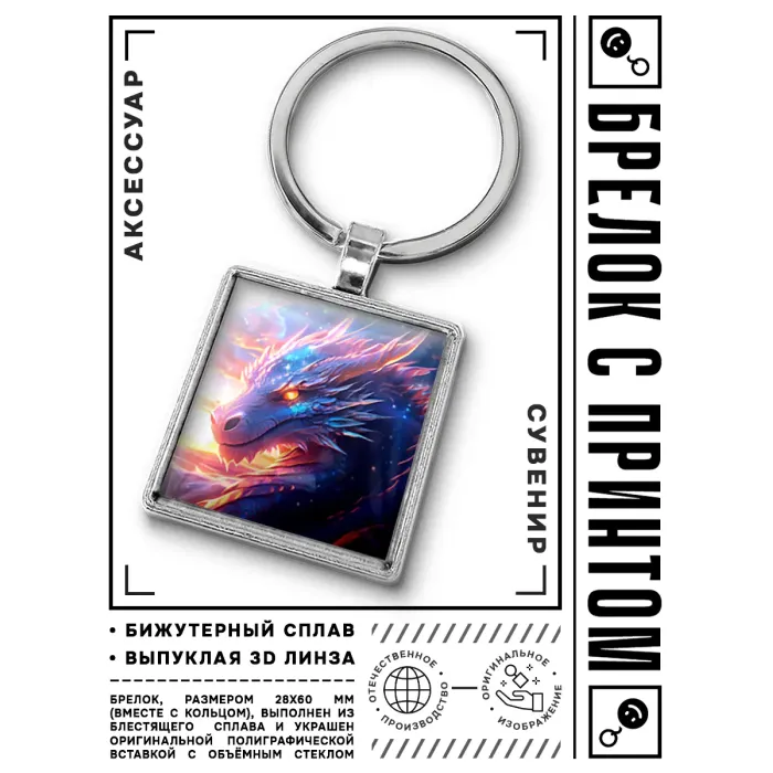 Брелок в виде китайского дракона из бижутерного сплава со стеклянной линзой.