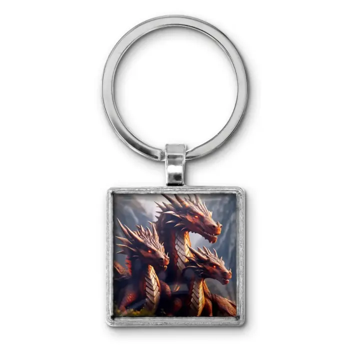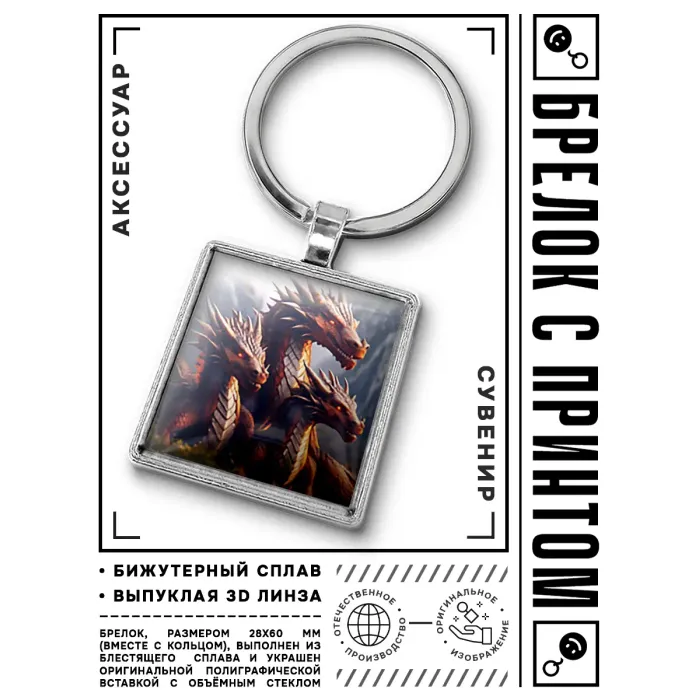 Брелок-сувенир из бижутерного сплава и стекла с изображением трёх драконов.