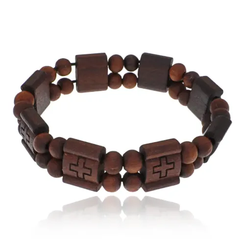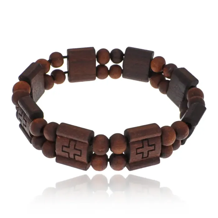 Христианский стрейч-браслет из тёмного дерева с бусинами.
