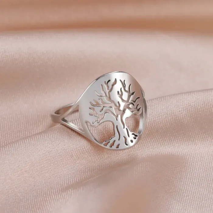 Кольцо «Дерево жизни» из бижутерного сплава с покрытием под серебро.