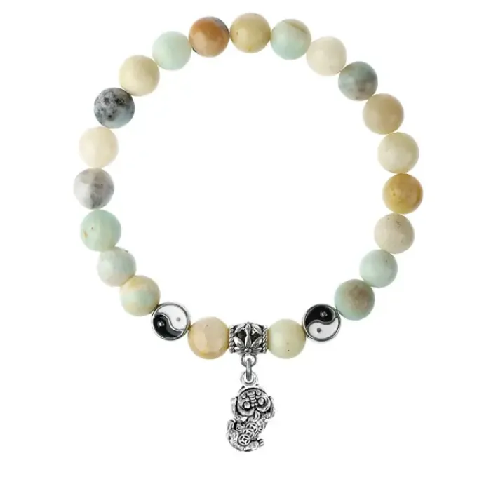Браслет Пи Яо — это уникальный амулет, созданный из натурального камня Амазонит. Этот браслет не только стильный аксессуар, но и символ богатства и защиты. Подвеска-талисман выполнена из бижутерного сплава с покрытием под серебро, что придаёт изделию особую элегантность.