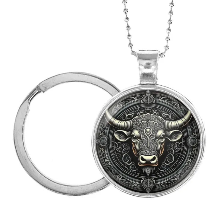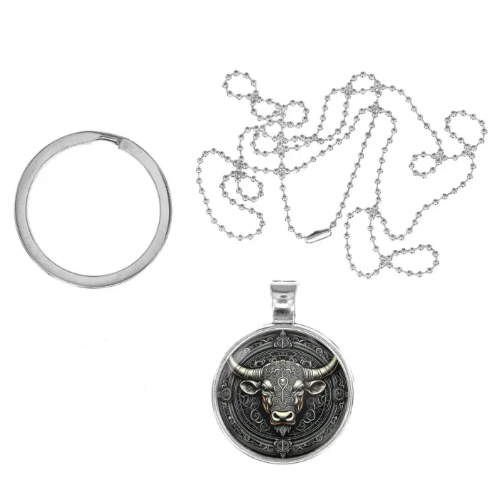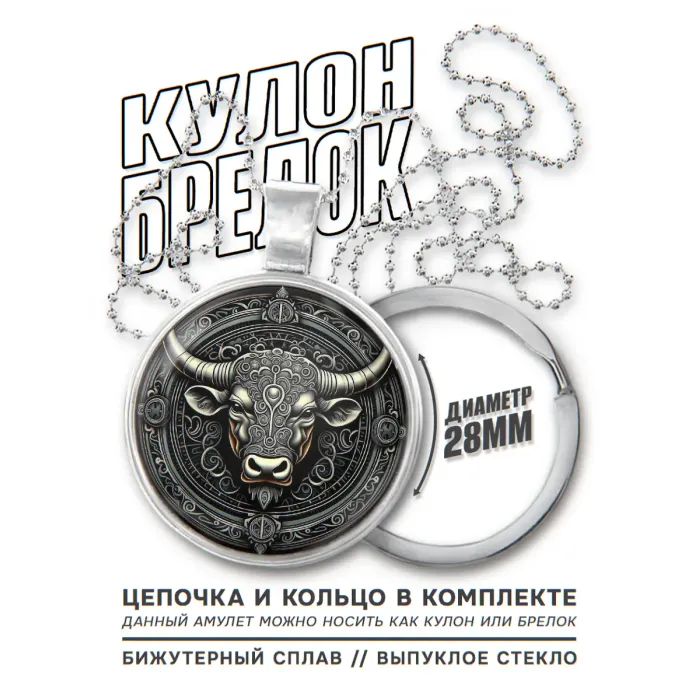 Кулон-брелок в виде быка из бижутерного сплава с серебряным покрытием.