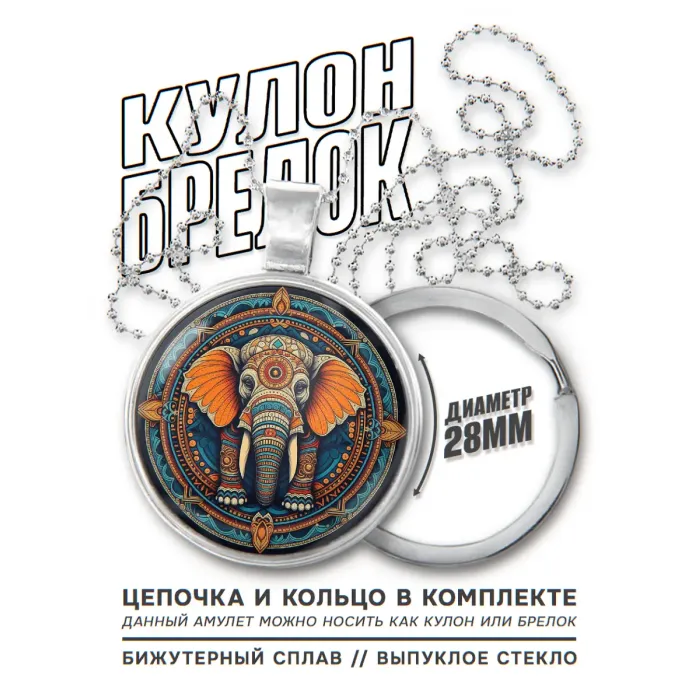 Размеры и комплектация: Диаметр кулона 28 мм. В комплекте цепочка, кольцо. Упаковка: полипропиленовый пакет.